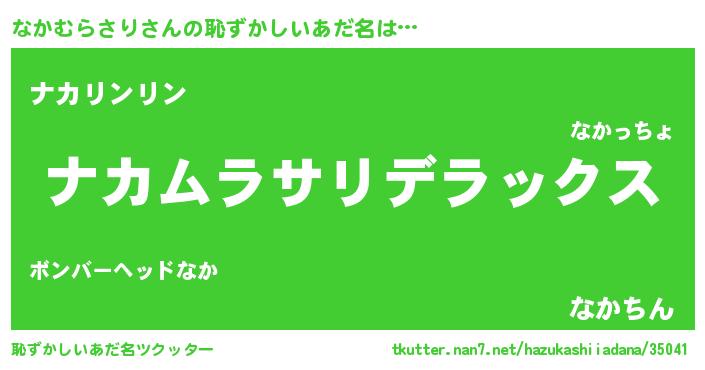 | 男性向けラノベタイトル風あだ名 | 『なかむらさり~年齢イコール彼女いない歴の魔法使い~』 |