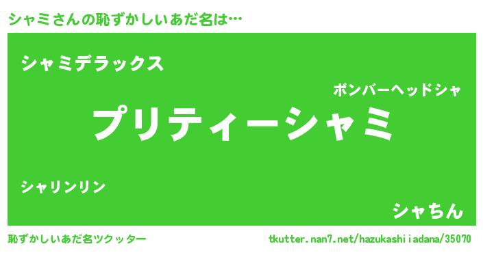 | ヒーロー風カッコイイあだ名 | 『スーパーシャミ』『ウルトラ戦士シャミ』 |