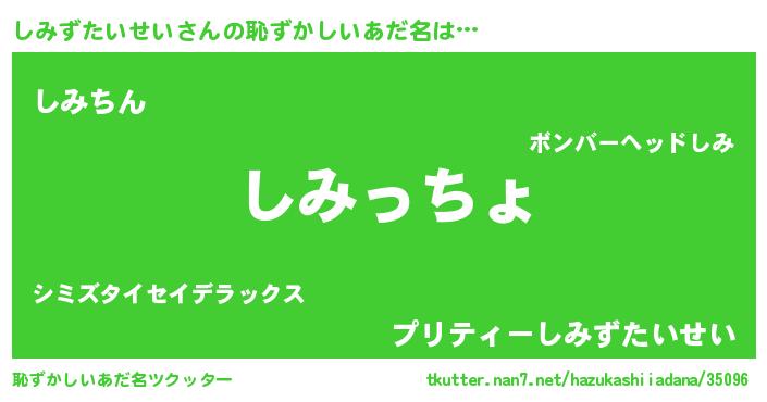 | 意味不明あだ名 | 『住所不定無職しみずたいせい(11歳)』 |