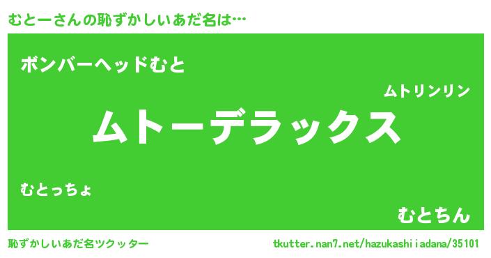 | ヘコむあだ名 | 『むとー(笑)』『むとを』『酢こんぶ』 |