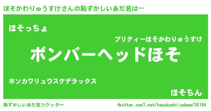 | 女子向けラノベタイトル風あだ名 | 『ほそかわりゅうすけ恋絵巻』 |