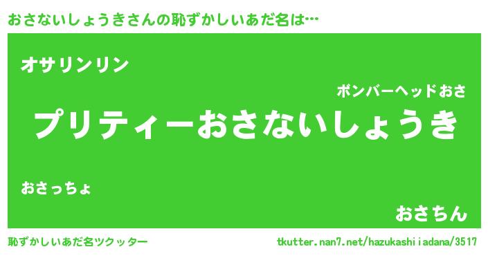 | 男性向けラノベタイトル風あだ名 | 『オサナイショウキアートオンライン』 |