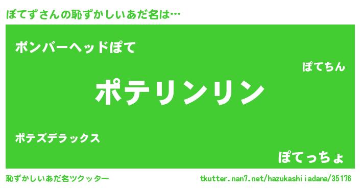 | 男性向けラノベタイトル風あだ名 | 『ダンジョンにぽてずを求めるのは間違っているだろうか』 |