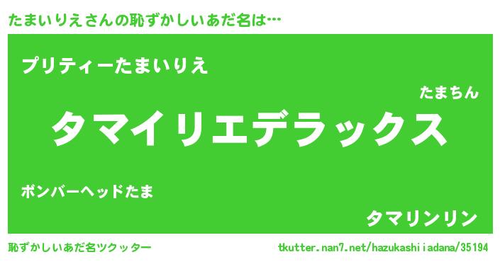 | 意味不明あだ名 | 『自称たまいりえ』『ペロリンたまいりえ』 |