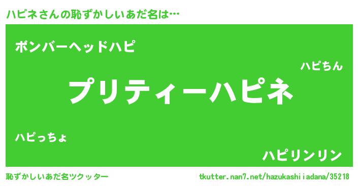 | 意味不明あだ名 | 『ペロリンハピネ』『永久保存ハピネ』 |