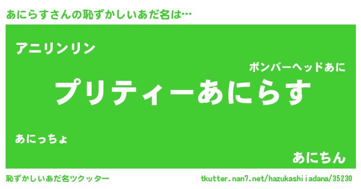 | 意味不明あだ名 | 『ペロリンあにらす』『永久保存あにらす』 |
