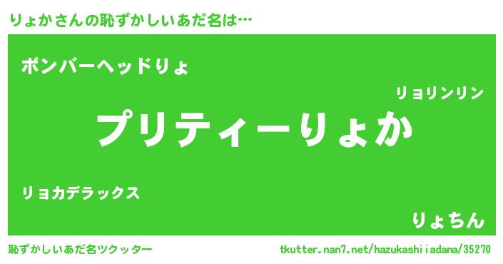 | ヘコむあだ名 | 『りょにー』『りょか(苦笑)』 |