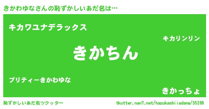 | ヘコむあだ名 | 『きかわゆな(爆)』『酢こんぶ』 |