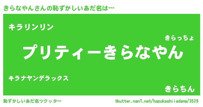 | ヘコむあだ名 | 『きらふぇ~』『きら太郎』『つくし』 |