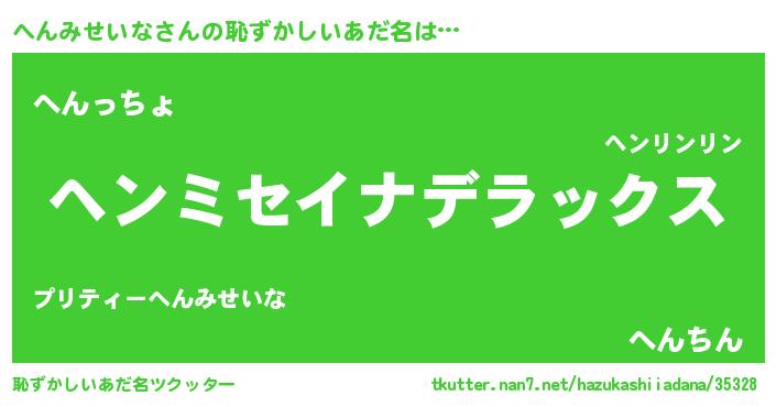 | 意味不明あだ名 | 『自称へんみせいな』 |