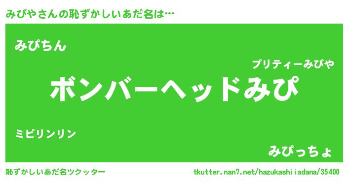 | ヘコむあだ名 | 『みぴや(笑)』『牛乳』『みぴにー』 |