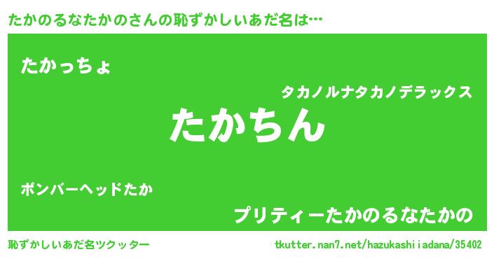 | ヘコむあだ名 | 『たかのるなたかの(笑)』『酢こんぶ』 |