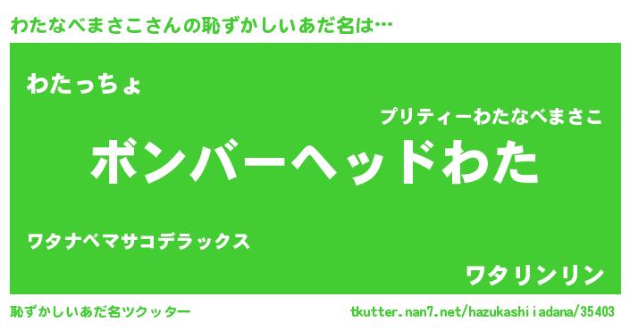 | 意味不明あだ名 | 『眠気覚ましガムわたなべまさこ味』 |