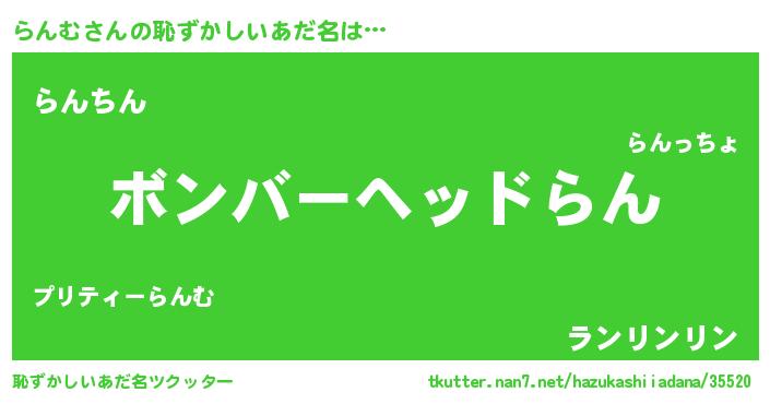 | 男性向けラノベタイトル風あだ名 | 『おまえをオタクにしてやるから、俺をらんむにしてくれ! 』 |