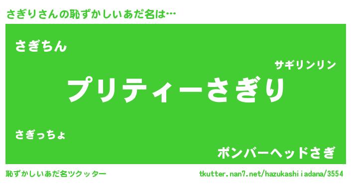 | ヘコむあだ名 | 『さぎにー』『さぎり(震え声)』 |