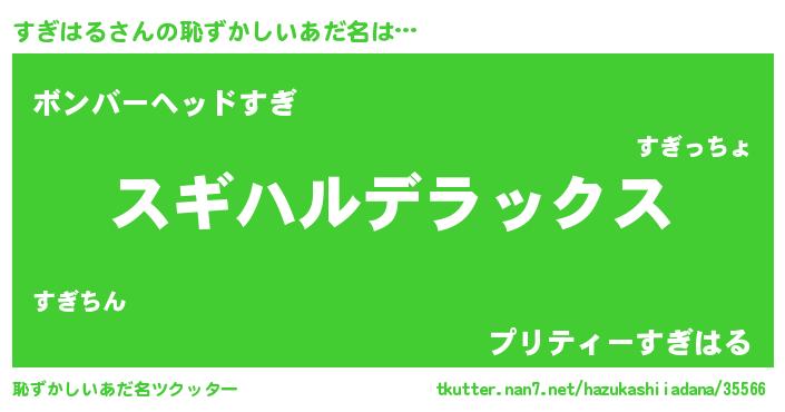 | 男性向けラノベタイトル風あだ名 | 『すぎはるに滅ぼされるだけの簡単なお仕事です』 |