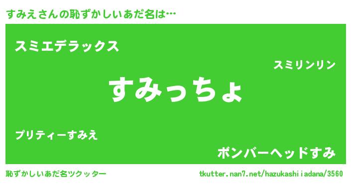 | 意味不明あだ名 | 『すみえフォーエバー』『自称すみえ』 |