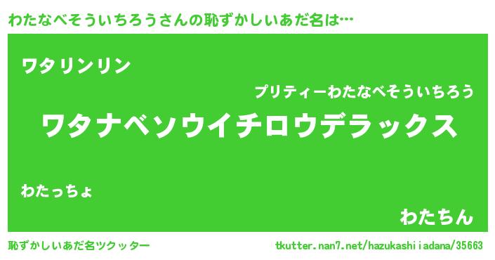 | 意味不明あだ名 | 『自称わたなべそういちろう』 |