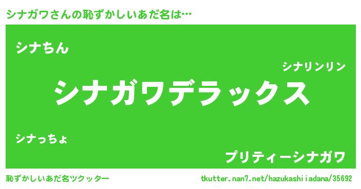 | ヘコむあだ名 | 『シナガワ(笑)』『シナふぇ~』 |