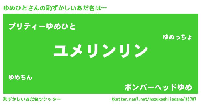 | ポケモン風あだ名 | 『ユーメイ』『ヒユメヒト』 |