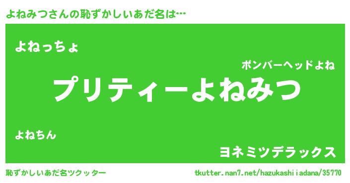 | 女子向けラノベタイトル風あだ名 | 『よねみつの玉の輿計画!』 |