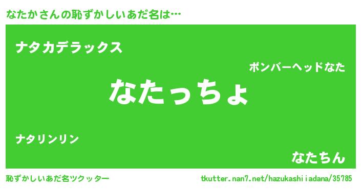 | 意味不明あだ名 | 『なたかフォーエバー』『自称なたか』 |