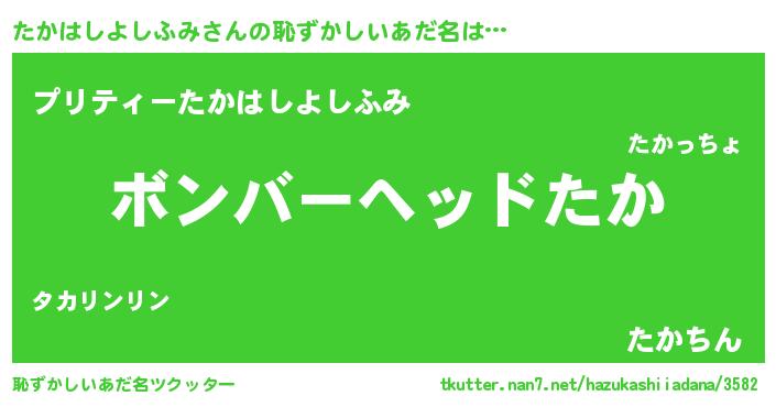 | ヘコむあだ名 | 『たかにー』『たかはしよしふみ(笑)』 |