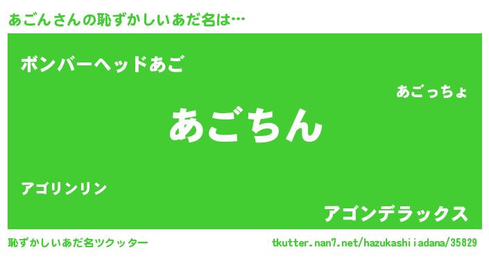 | 意味不明あだ名 | 『永久保存あごん』『ニラ科あごん属』 |