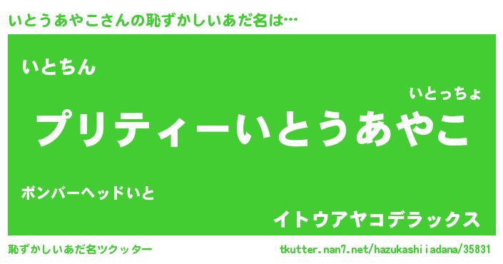 | 男性向けラノベタイトル風あだ名 | 『この素晴らしい世界にいとうあやこを!』 |