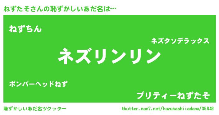 | ヘコむあだ名 | 『ねずぷりん』『ねずたそ(小並感)』 |