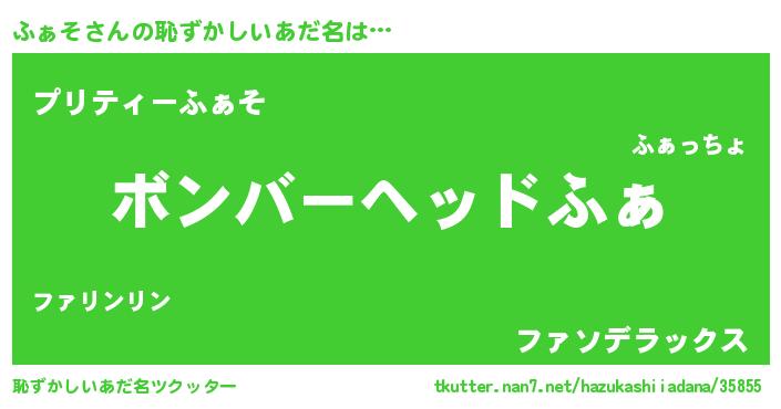 | ヘコむあだ名 | 『ふぁっふぃ~』『豆乳』『ふぁっぺ』 |