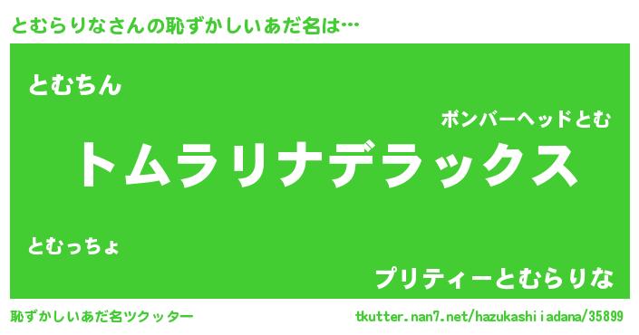 | ヘコむあだ名 | 『とむらりな(遠い目)』『とむっふぃ~』 |