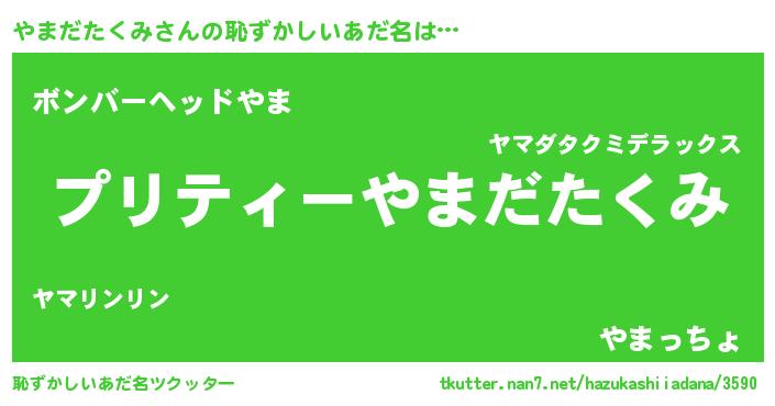 | ヒーロー風カッコイイあだ名 | 『仮面ヤマダー』『スーパーヤマダタクミ』 |