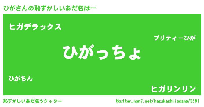 | 意味不明あだ名 | 『ひがフォーエバー』『自称ひが』 |
