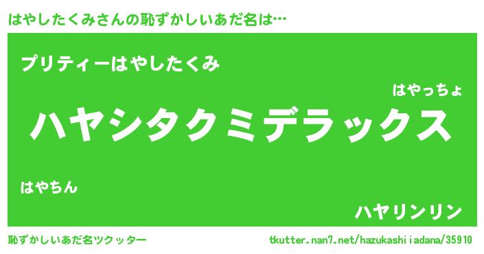 | 意味不明あだ名 | 『自称はやしたくみ』 |