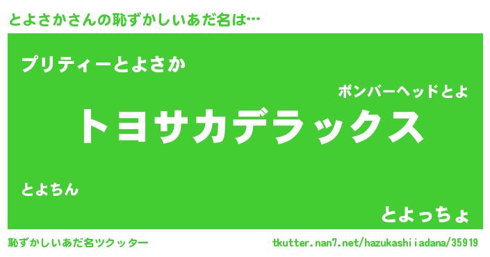 | 男性向けラノベタイトル風あだ名 | 『Re:とよさかから始める異世界生活』 |