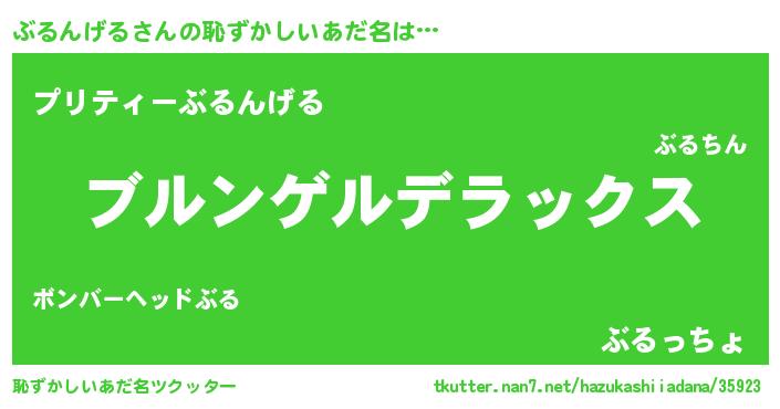 | 男性向けラノベタイトル風あだ名 | 『この素晴らしい世界にぶるんげるを!』 |