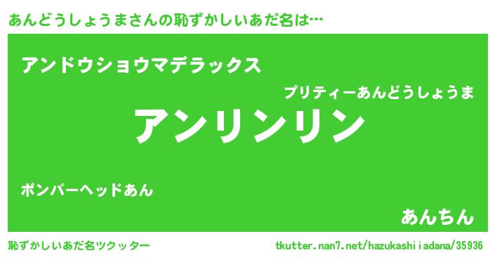 | ヘコむあだ名 | 『あんっちょ』『あんどうしょうま(笑)』 |