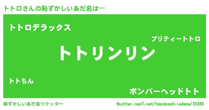 | ヘコむあだ名 | 『トトっぺ』『トトもー』『なまこ酢』 |