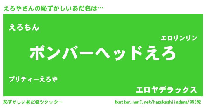 | 欧米人風あだ名 | 『アンジェラ・えろや』『ダニエルえろや』 |