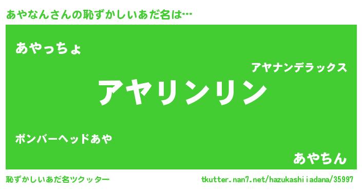 | 意味不明あだ名 | 『とにかく怪しいあやなん』 |