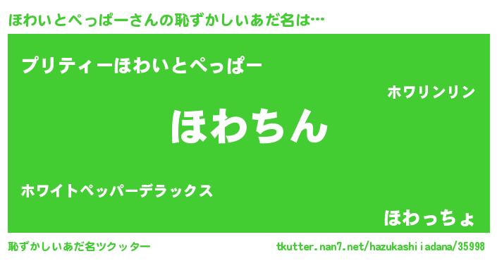 | 意味不明あだ名 | 『永久保存ほわいとぺっぱー』 |