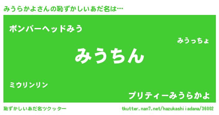| 胡散臭い通販商品みたいなあだ名 | 『来世でも幸せになれる健康食品…その名も「みうらかよ」』 |