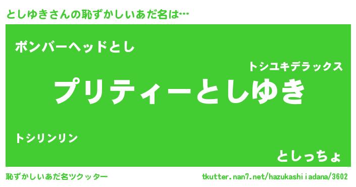 | 男性向けラノベタイトル風あだ名 | 『としゆきに滅ぼされるだけの簡単なお仕事です』 |