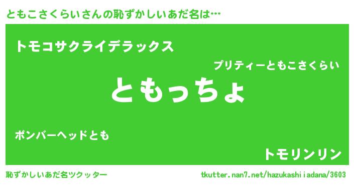 | 意味不明あだ名 | 『ともこさくらいフォーエバー』 |