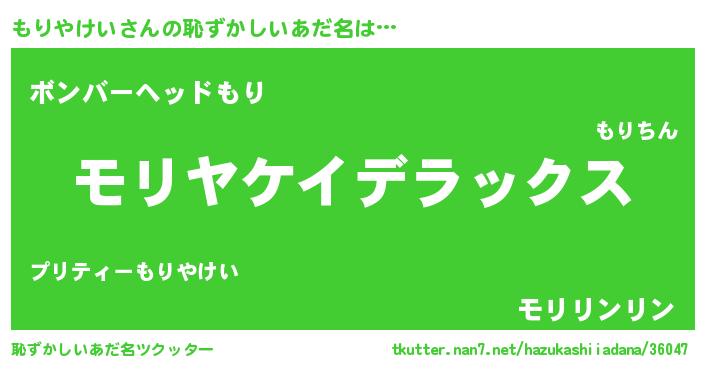 | ヘコむあだ名 | 『もりっぺ』『もりやけい(遠い目)』 |