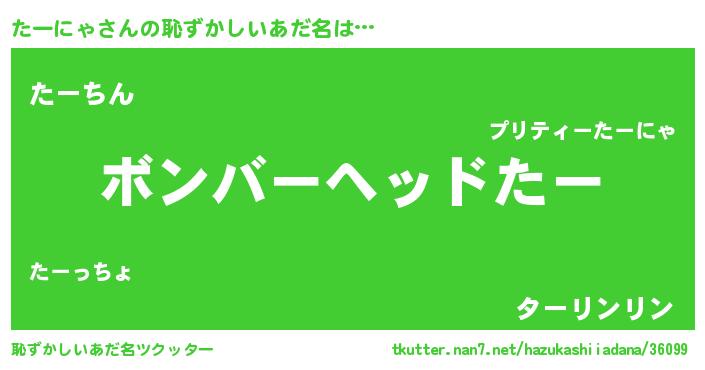 | ヘコむあだ名 | 『たーにゃ(小並感)』『たーっぺ』 |