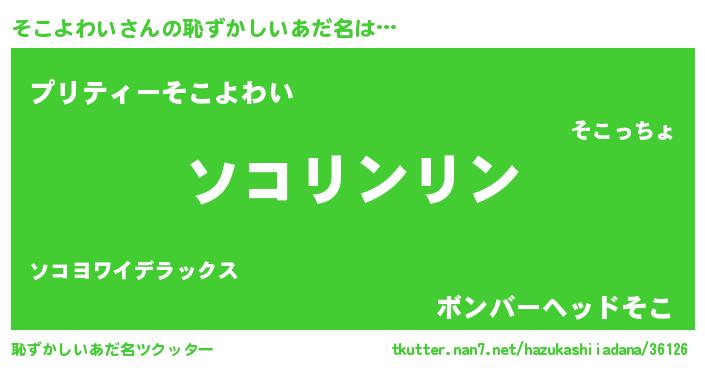 | 料理風あだ名 | 『そこよわいの豆乳スープ』 |
