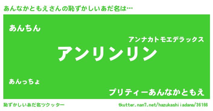 | ヘコむあだ名 | 『あんっちょ』『あんなかともえ(震え声)』 |