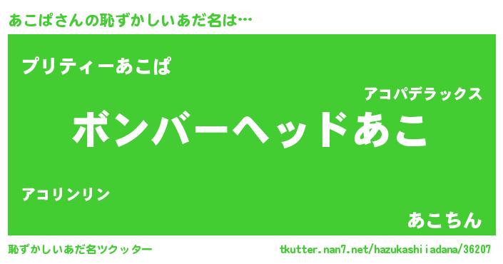 | 意味不明あだ名 | 『眠気覚ましガムあこぱ味』『自称あこぱ』 |